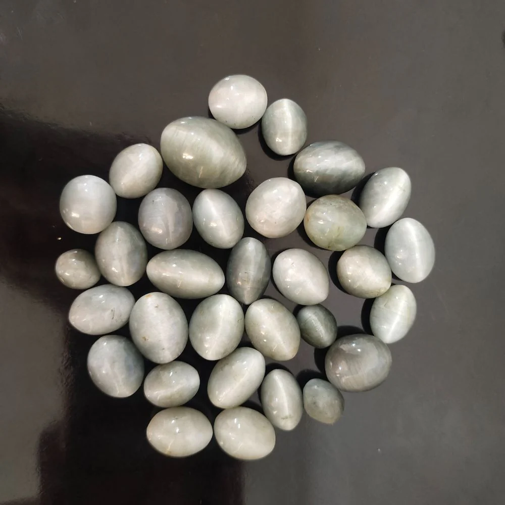 A mesmerizing *Cabochon Cat’s Eye* gemstone featuring a smooth, polished surface that highlights the unique chatoyancy effect, creating a striking line of light across the stone. Known for its elegance and mystical appeal, it is perfect for rings, pendants, and statement jewelry.