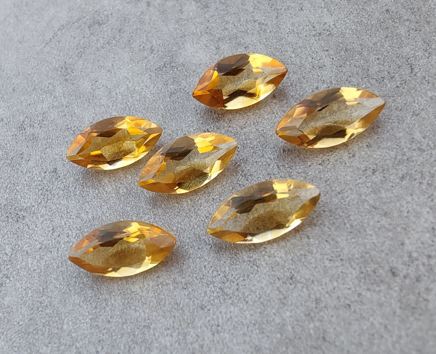 A dazzling Marquise Cut Citrine gemstone featuring a rich golden-yellow hue and brilliant facets that enhance its sparkle. The elongated marquise shape adds sophistication and elegance, making it perfect for rings, pendants, and statement jewelry pieces.