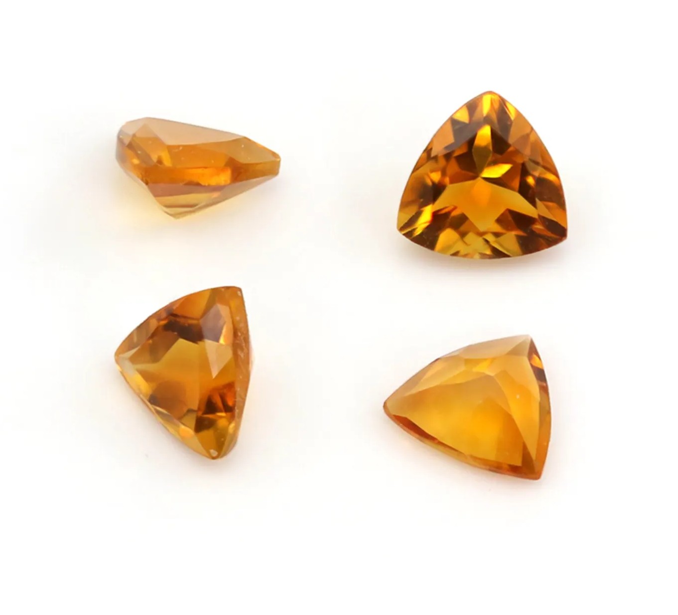 A striking Triangle Cut Citrine gemstone featuring a vibrant golden-yellow color and sharp, precise facets that enhance its brilliance. The unique triangular shape adds a modern and bold touch, perfect for rings, pendants, and statement jewelry pieces.
