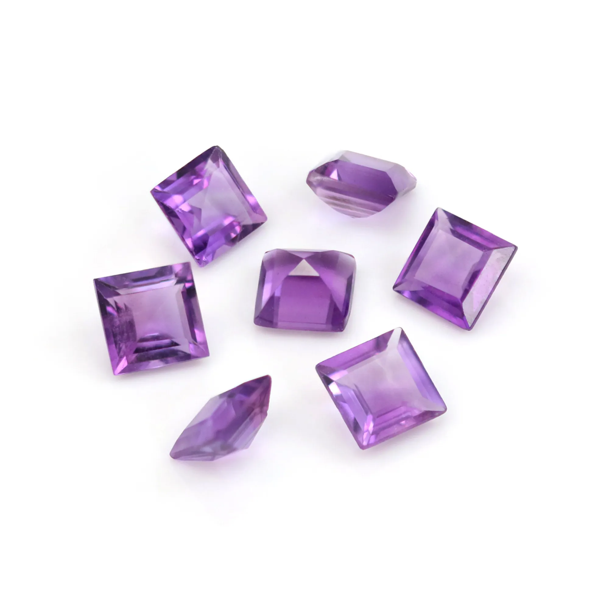 Our Emerald Cut and Princess Cut Amethyst gemstones showcase exceptional clarity and a deep, vibrant purple color. The Emerald cut offers a classic, elegant look with step facets, while the Princess cut provides a modern style with brilliant sparkle.