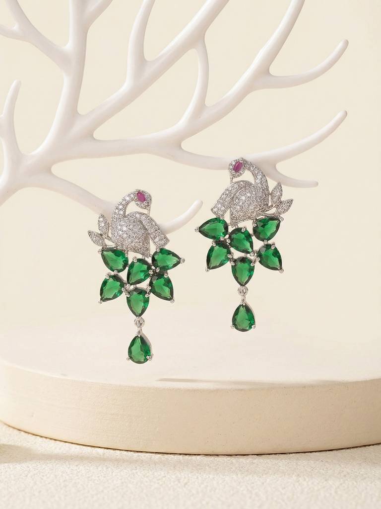 Peacock Style Emerald, Ruby & Diamond Earrings – Women