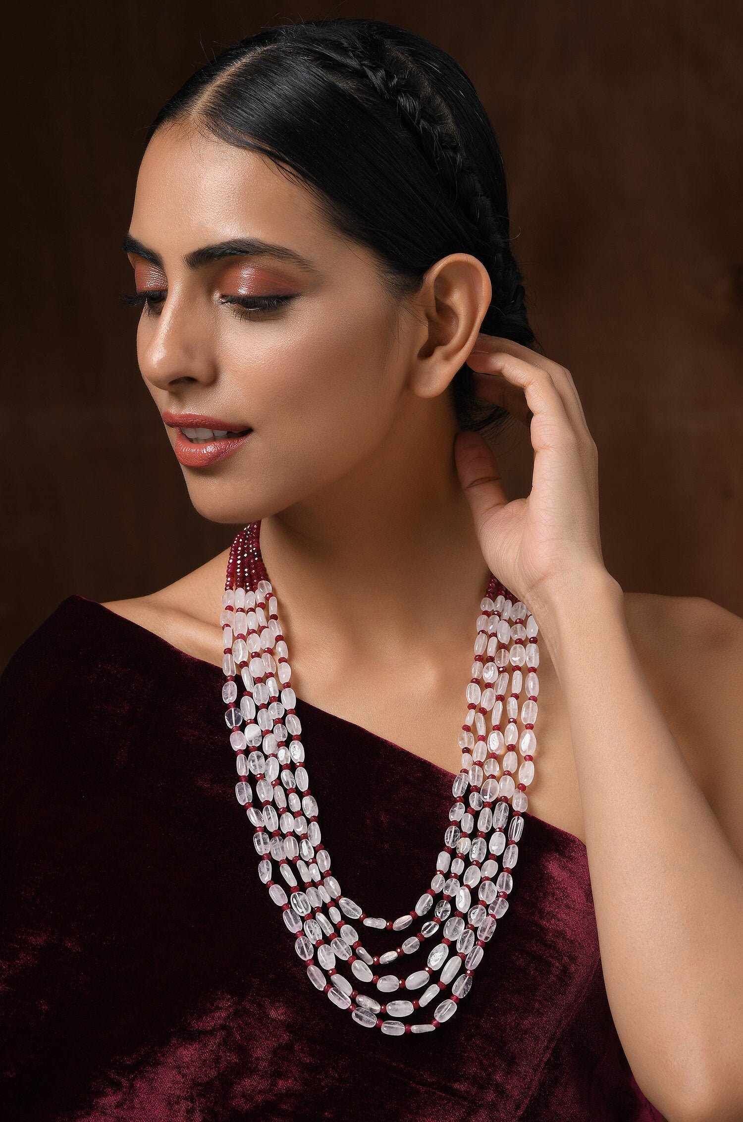 Delicate and feminine, this multilayered Rose Quartz necklace features soft pink hues that add a touch of grace and charm. Perfect for everyday elegance or special occasions, each piece comes with certification and guaranteed resell value.