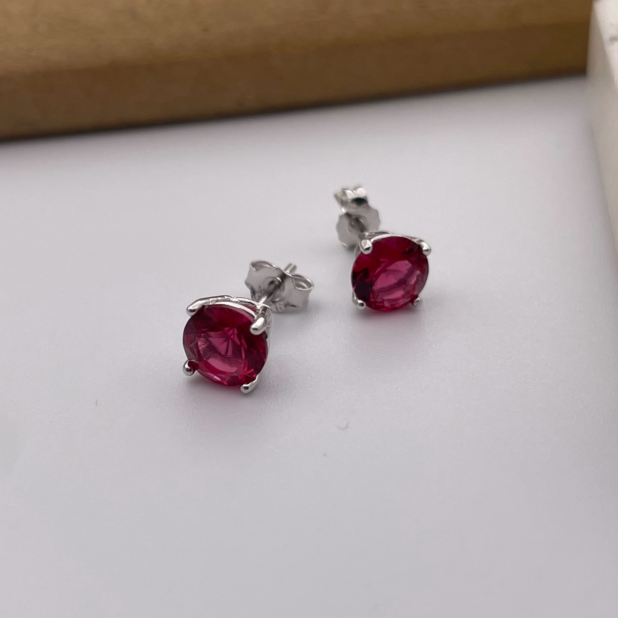 Bold and vibrant, these ruby ear tops in silver highlight the deep red beauty of natural rubies. Set in high quality silver, they offer a stylish and elegant look suitable for both men and women. Each pair comes with guaranteed certification from our in house gem authentication lab, along with custom jewelry services and a resell value service.