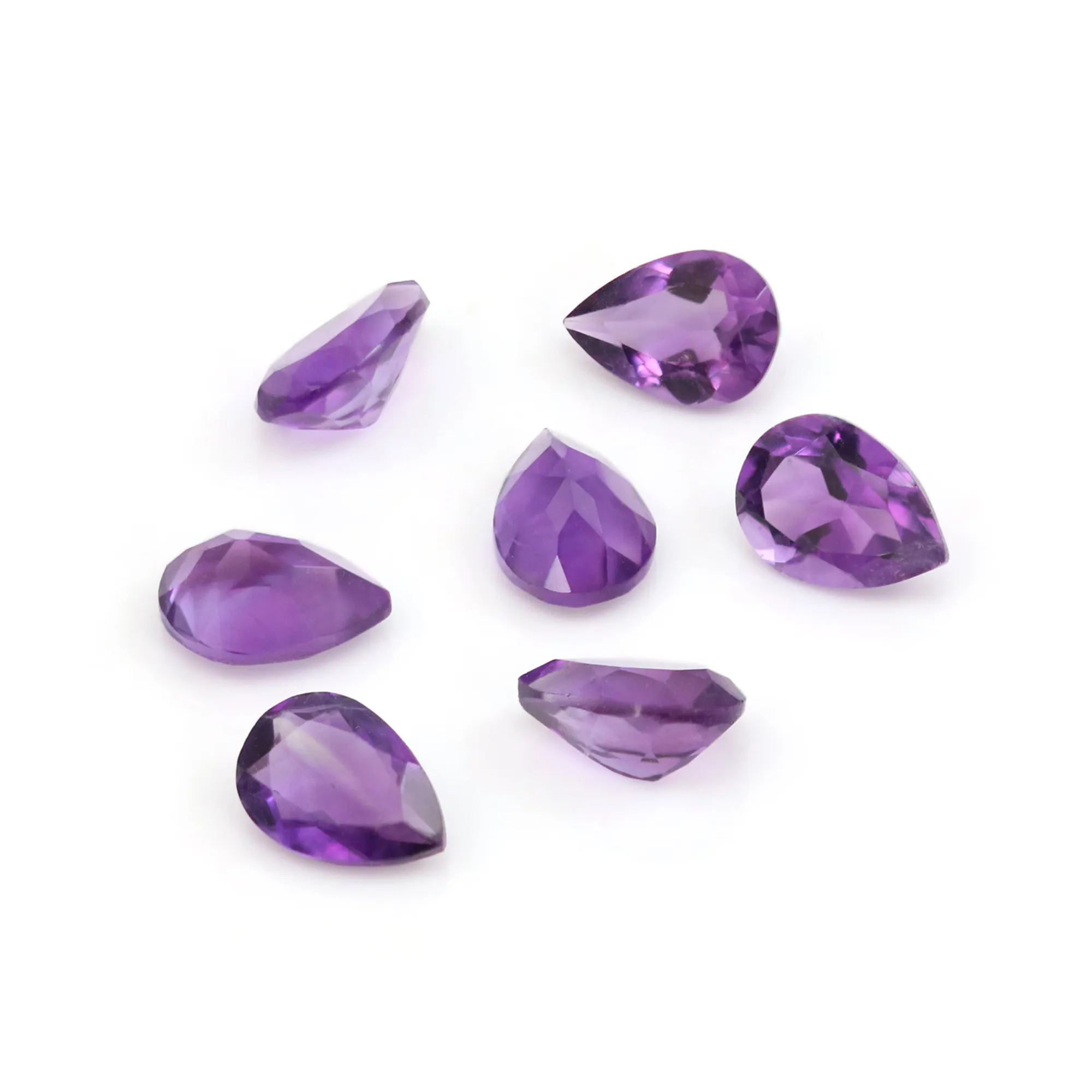 A beautiful Tear Drop Cut Amethyst known for its elegant pear-shaped design and brilliant purple glow. The graceful shape combines round and marquise elements, creating a timeless gemstone perfect for pendants, earrings, and statement rings.